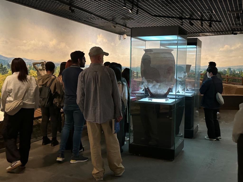 最后,留学生们自行参观了烟台市博物馆的其他展厅,欣赏了中国的陶瓷、玉石、青铜器、铁器、书画、丝织品等。