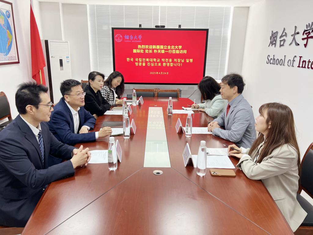 4月24日,韩国国立全北大学国际合作处处长朴天雄、国际处项目主管朴蓝天、崔艺花一行访问搜同